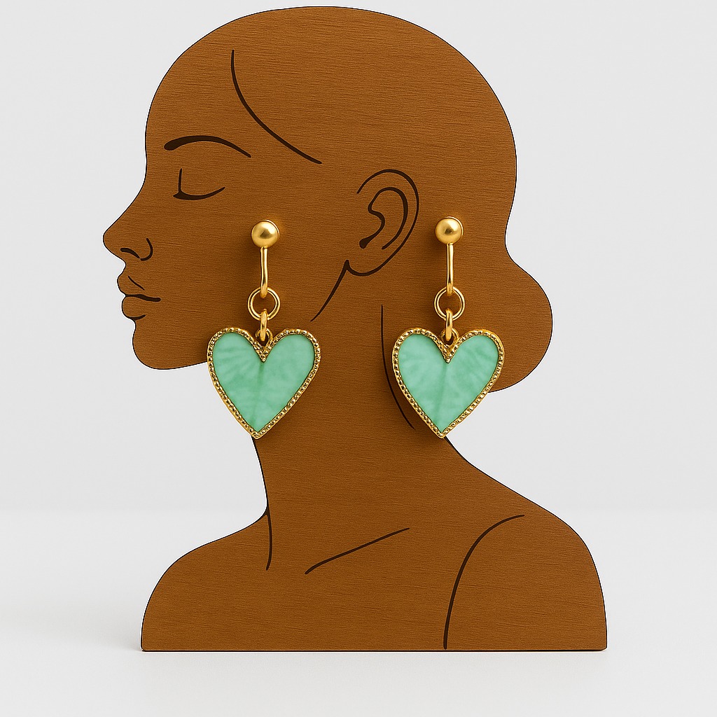 Σκουλαρίκια καρδιά σμάλτο σε χρώμα μέντα με επιχρυσωμένο κούμπωμα